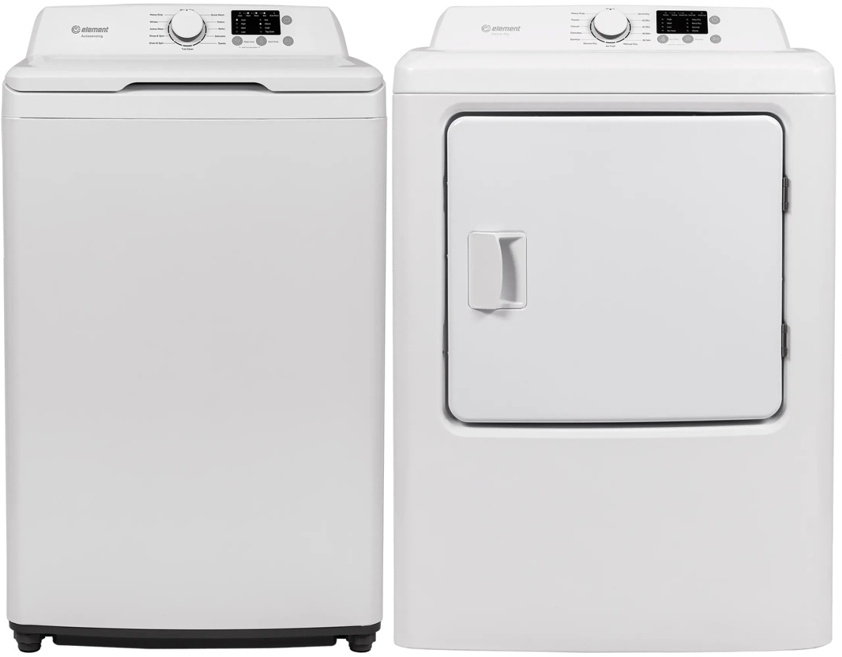 Element® White Laundry Pair with a 3.7 cu. ft. capacity top load washer and a 6.7 cu. ft. capacity front load gas dryer.Read More