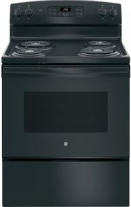 GE® 30" Black Free Standing Electric Range with 5 Cu. Ft. total capacity, storage drawer, and dual element bakeRead More