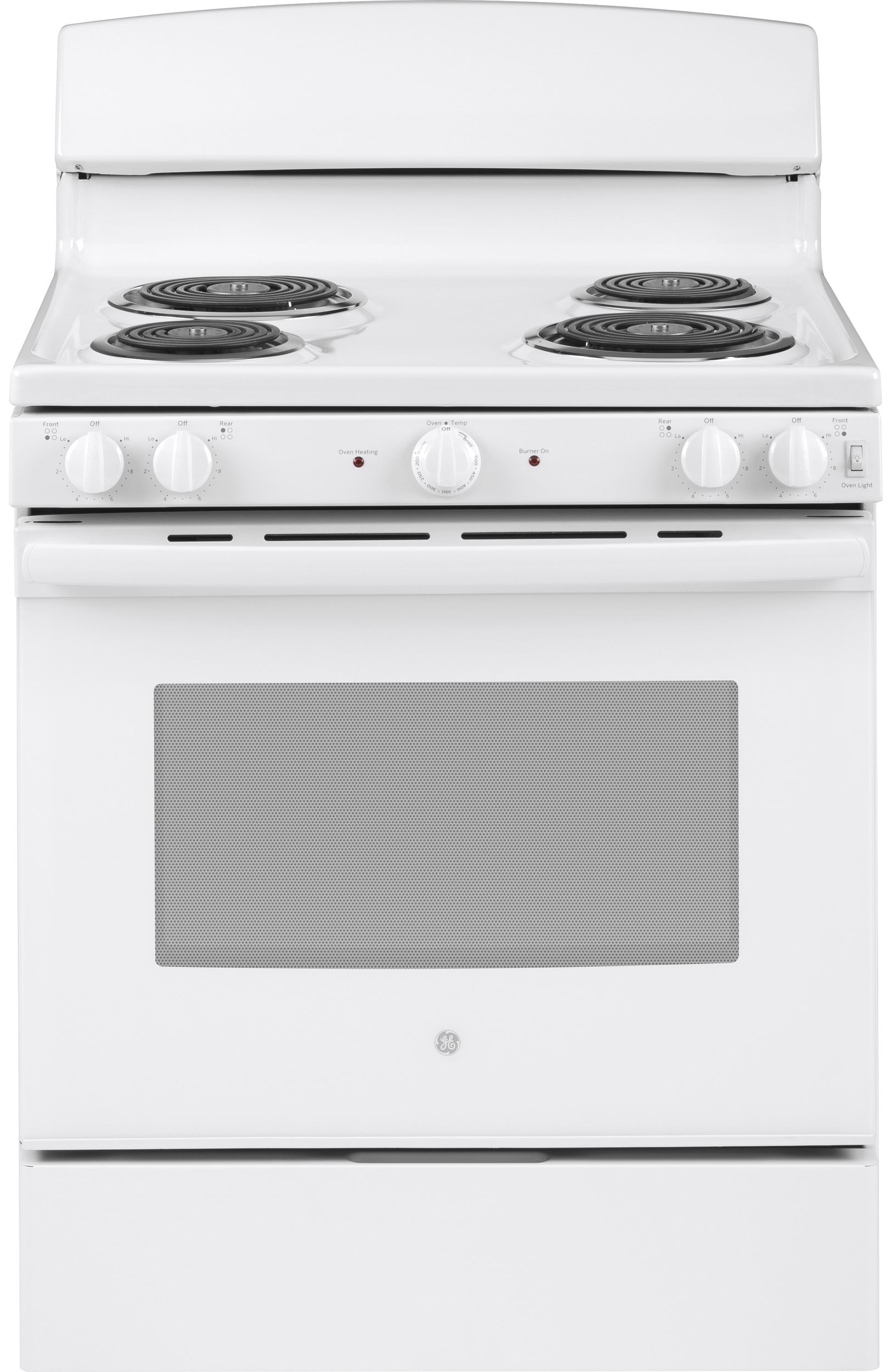 GE® 30" White Free Standing Electric Range with 5.0 Cu. Ft. total capacity, sensi-temperature technology, and dual element bakeRead More
