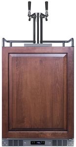 The SBC682PNRCFTWIN is a full-sized kegerator designed to serve cold brew coffee on tap. It is ETL-S listed to NSF-7 standards and meets UL-471 for commercial applications but is also approved for residential use. Sized at just 24" wide, it features a front-breathing system for built-in installation and a fully-finished cabinet that also allows freestanding use, with an included caster set for optional mobility. The exterior features 304 grade stainless steel construction for safe, weatherproof use in the outdoors. The door is designed to accept overlay panels (sized at 29 3/4" H x 23 5/16" W at a 3/4" thickness) to allow you to create a custom look to best suit your own kitchen design. This unit ships with a right hand door swing. For a left hand version, add option "LHDHinge." Additional features include a removable two-piece stainless steel drip tray to collect spills and a chrome guard rail to help keep glasses and mugs in place. This unit has a sealed rear for added protection from the elements.