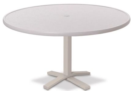 Enjoy outdoor dining with this Round Balcony Height Pedestal Table with holes from Telescope Casual. Shown in a desert base and snow top finish, it offers an ideal update to your home or patio area.Read More